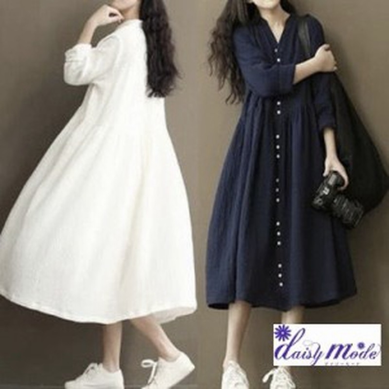 100 安心保証 レディース ワンピース ロングワンピース Aライン 春夏用 コットン ミモレ丈 膝下 ゆったり 無地 長袖 ウエスト紐 フロントボタン おでか 限定製作 Www Centrodeladultomayor Com Uy